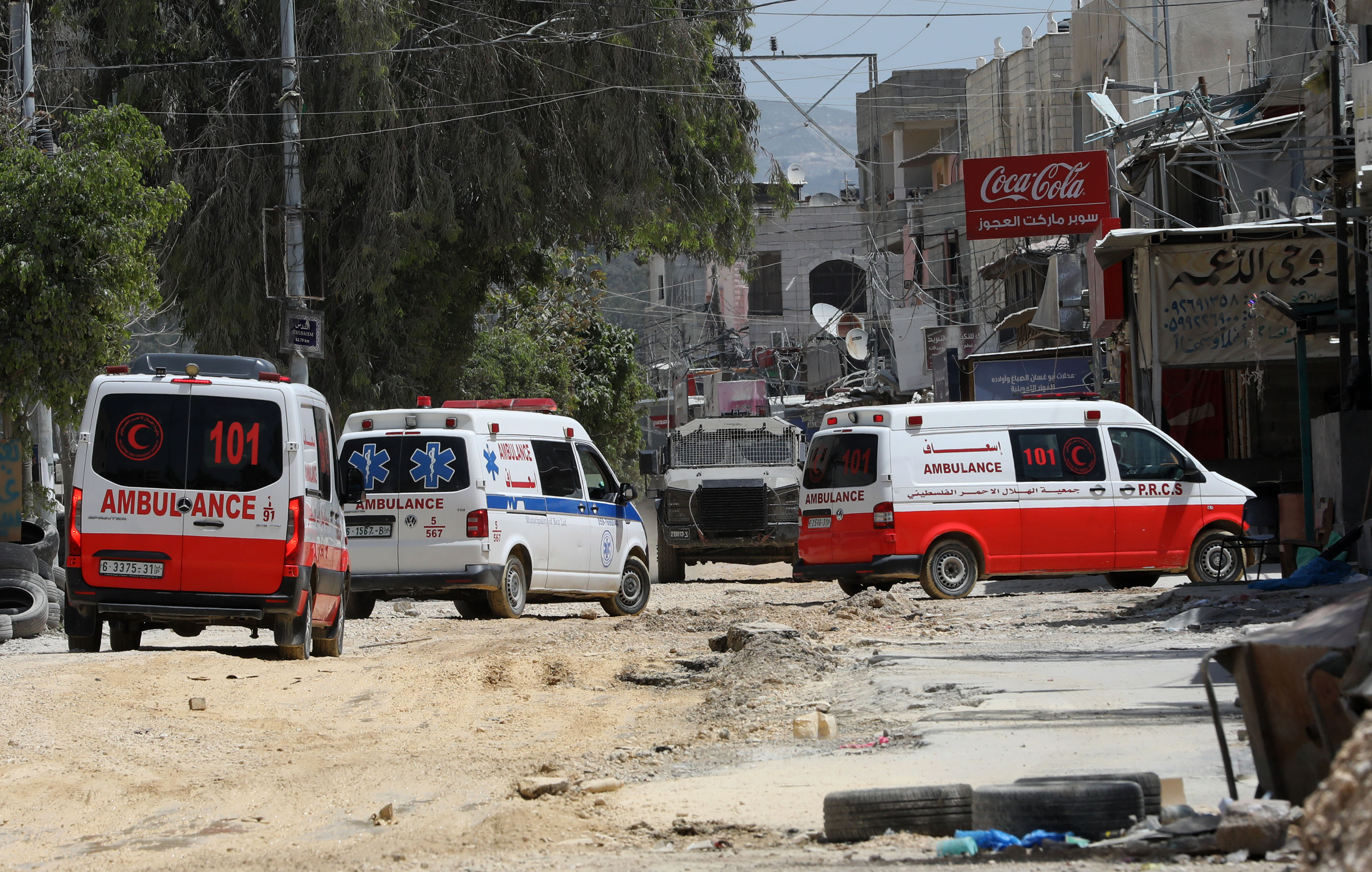 6月13日,在约旦河西岸杰宁以南的卡巴提亚镇,几辆救护车停在军事行径现场外围。巴勒斯坦约旦河西岸杰宁省官员和当地音讯东说念主士13日说,以色排队列本日插足约旦河西岸城市杰宁隔壁一城镇开展行径,形成3名巴勒斯坦东说念主厌世。新华社发(艾曼·诺巴尼摄)
