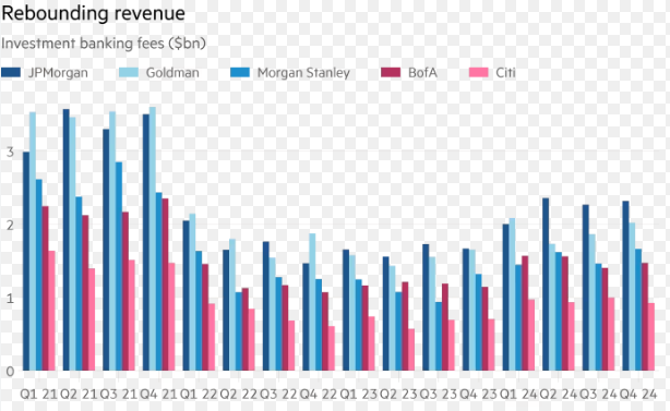 在履历了几年的低迷之后,华尔街的往还撮合者和往还员应该会迎来一个盈利的技术。在宇宙最大的几家银行公布的第一批第四季度收益讲明中,有迹象标明,2025年可能会在高端金融界限出现大量并吞、上市往还和其他行径。