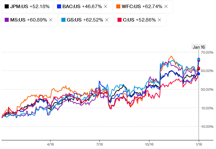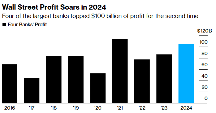收成于好意思联储降息、好意思国大选前后往还行径的激增以及投行业务回升,好意思国华尔街六大银行刚公布了创记录的事迹。对华尔街来说,在司理一段安心技术之后,这是一个可喜的记忆。包括摩根大通(JPM.US)、好意思国银行(BAC.US)、富国银行(WFC.US)、摩根士丹利(MS.US)花旗(C.US)和高盛(GS.US)在内的好意思国大型银行四季度事迹浮松跳跃预期。