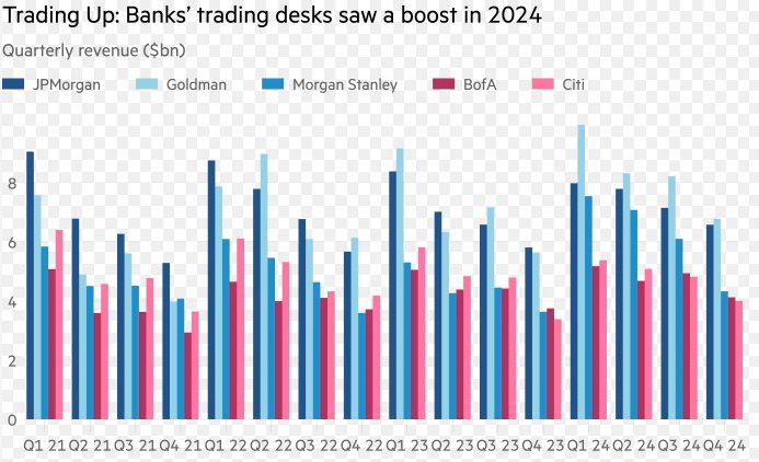 其次,市集波动性推高了华尔街银行往还部门的收入。第四季度,跟着投资者消化关联好意思国大选和通胀的音书,10年期好意思国国债收益率等许多经济方针高下波动。
