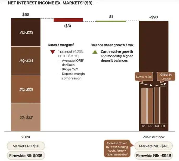 尽管华尔街高管和投资者对翌日一年的往还富贵感到振奋,但华尔街银行的业务并非齐将迎来苍劲的一年。华尔街大行臆测2025年净利息收入(NII)不会重现已往几年的苍劲增长,但仍有望保捏一定的韧性。
